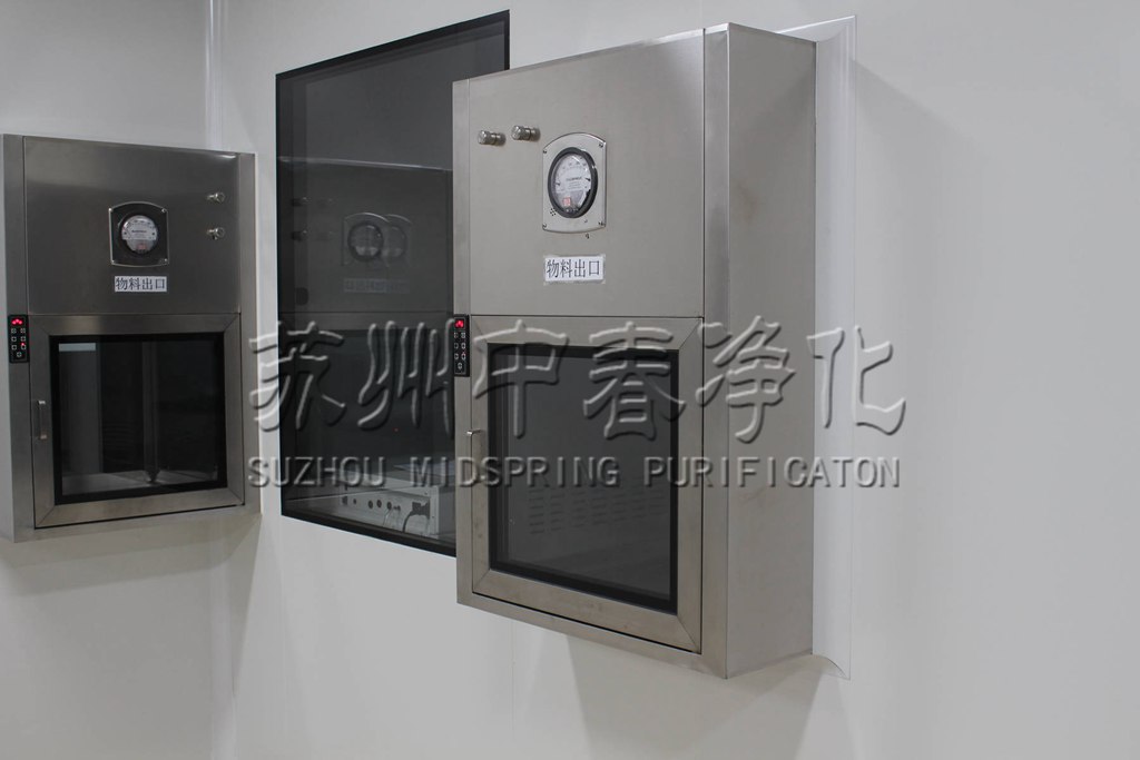 傳遞窗是潔凈室內外輸出物品時,防止污染的裝置。主要用于潔凈區之間、潔凈區與非潔凈區之間小件物品的傳遞,以減少潔凈室的開門次數,把對潔凈室的污染降到較低程度,并有利于潔凈室維持正壓。