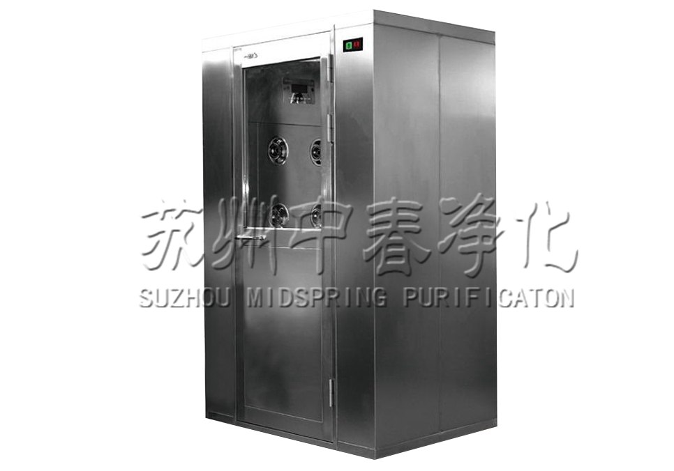 潔凈室內,在動態情況下,細菌及塵埃的較大發生源是操作者,當操作者進入潔凈室之前,必須用潔凈空氣吹淋其衣服表面附著的塵埃顆粒,并起到氣閘的作用,用戶可以根據廠房布置、工藝要求選擇不同的風淋室。